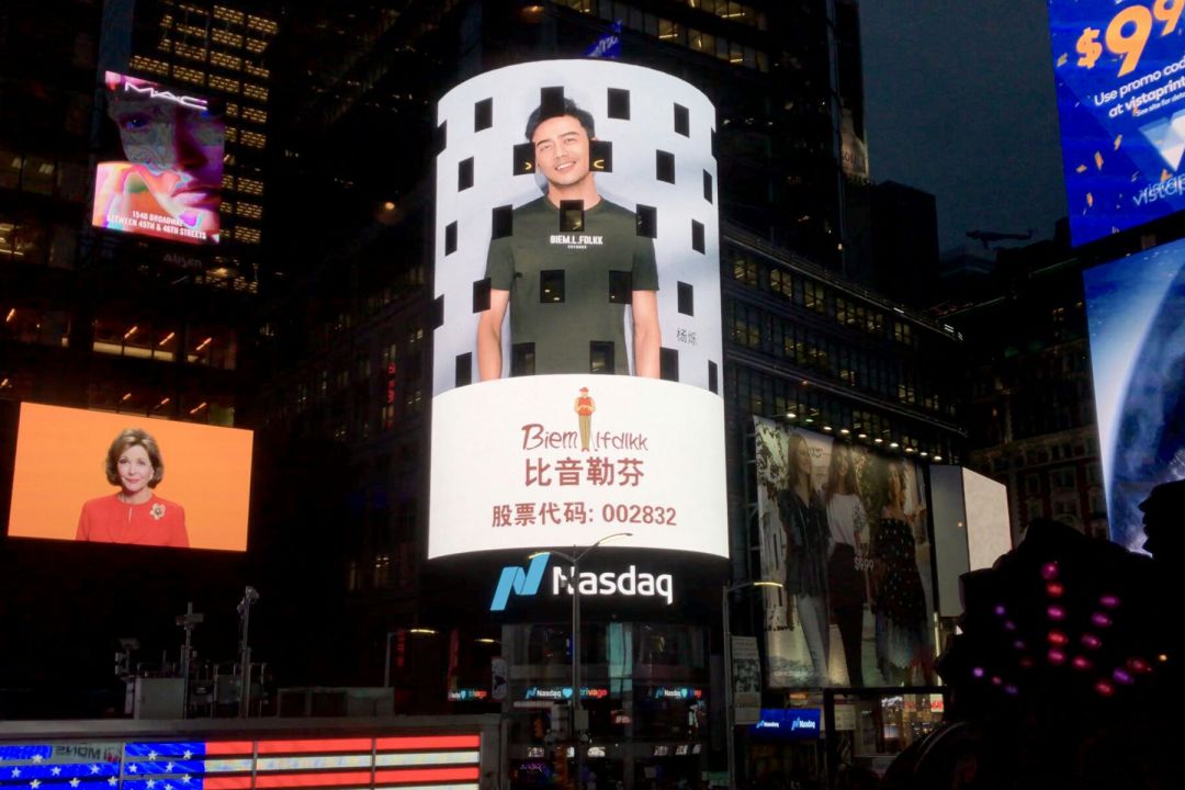 比音勒芬 | 杨烁江一燕霸屏纳斯达克大屏 比音勒芬在纽约时代广场向世界SAY HI