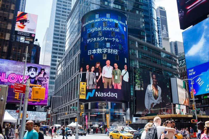 美国当地时间2018年6月21日上午11点,日本数字财经品牌照片登陆这一被看做财富实力和发展潜力象征的纳斯达克大屏幕。