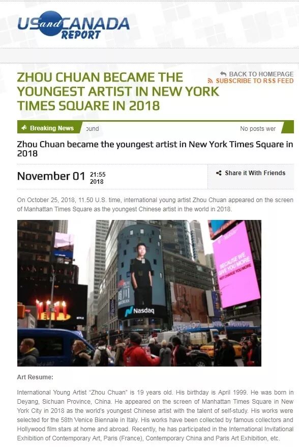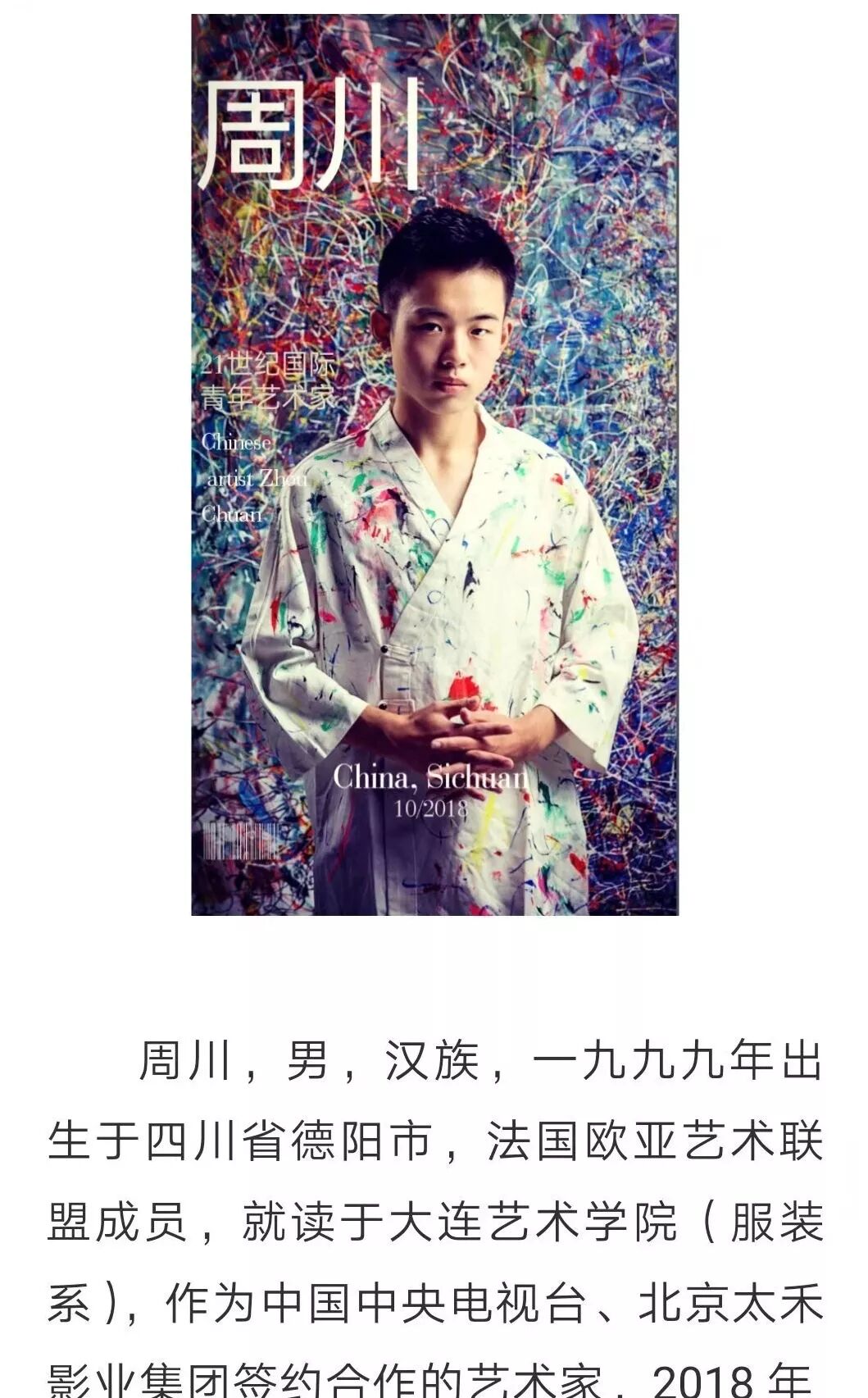 被誉为“21世纪国际青年艺术家”的周川同学也曾被美国早晨新闻网、美国前沿杂志、ASK、太平洋播报、The Big Spring先驱日报、美国知名广播新闻网、欧洲邮政公报、芭莎时尚网、亚利桑那共和报、美加联合播报、布法罗新闻报、美国先锋晚报等世界各大著名媒体相继报道。